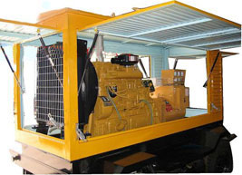 韶山柴油发电机组/移动柴油发电机组设计独具创新,机动性高、重心低、制动安全、制造精良、外形美观。 韶山拖车车架采用槽梁焊接成框架结构,节点选择合理、强度高、刚性好;同时装有钢板弹簧悬架结构;拖车采用高度可调节插销式牵引架,适用于各种高度牵引车;采用圆形钢管焊接直通式车轴,结构紧凑,安全可靠;车架四角设有机械式支撑装置,配备惯性行车制动、驻车制动和脱离应急制动,确保机组在各种状况下的安全;车架前端设有支撑轮,具备承受机组垂直载荷的功能的同时还具备导向功能;整车配备转向和刹车指示灯,同时装有尾灯标准插头